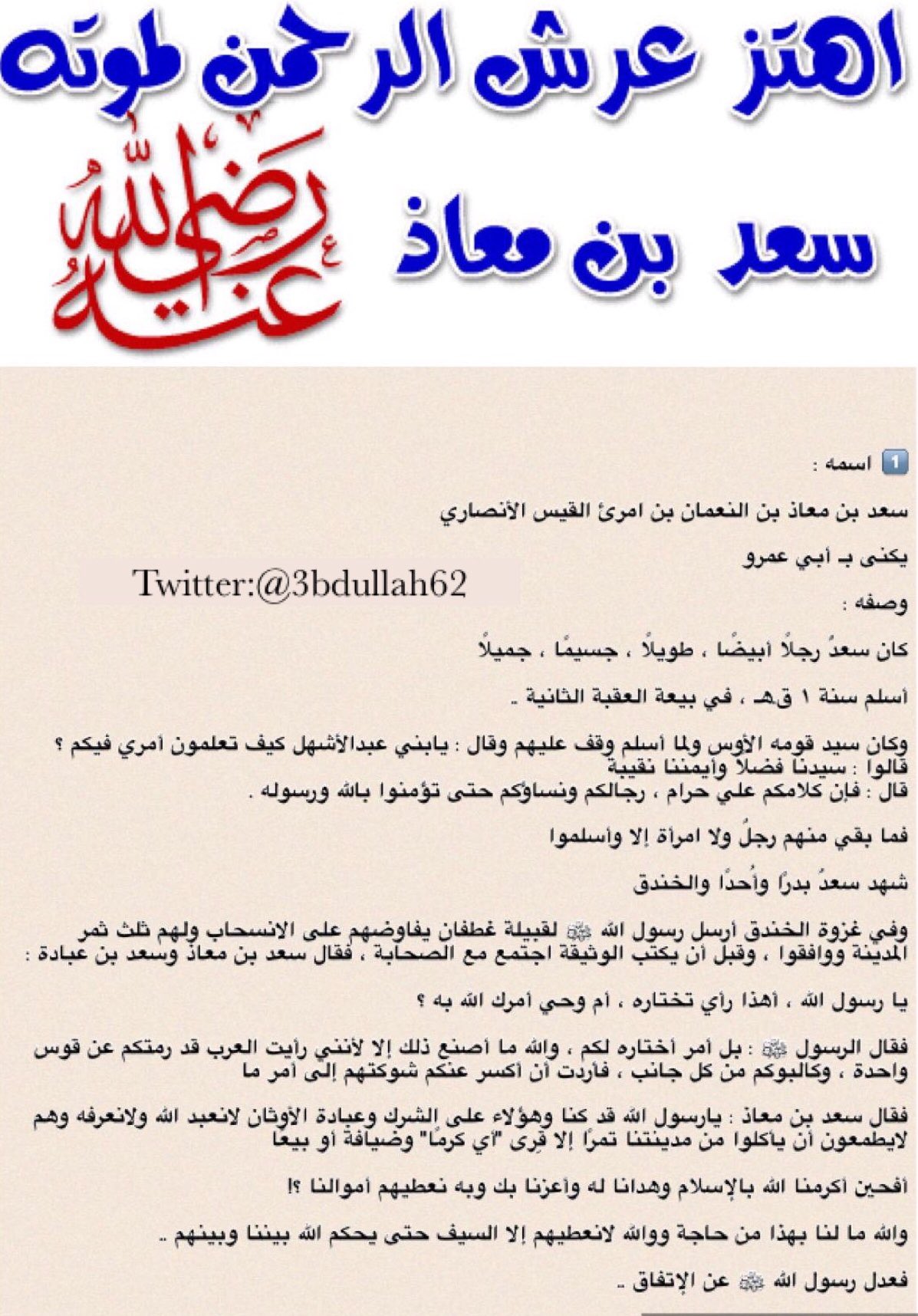عبدالله الرشيد On Twitter سيرة من ا هتز لموته عرش الرحمن سعد بن معاذ رضي الله عنه في صورتين