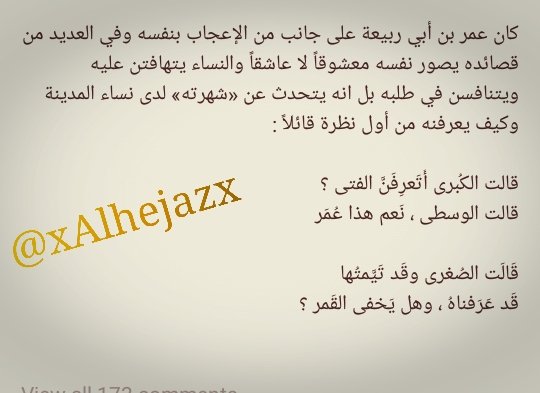 خديجة Di Twitter الشاعر عمر بن أبي ربيعة معبرا عن نفسه وهل يخفى القمر