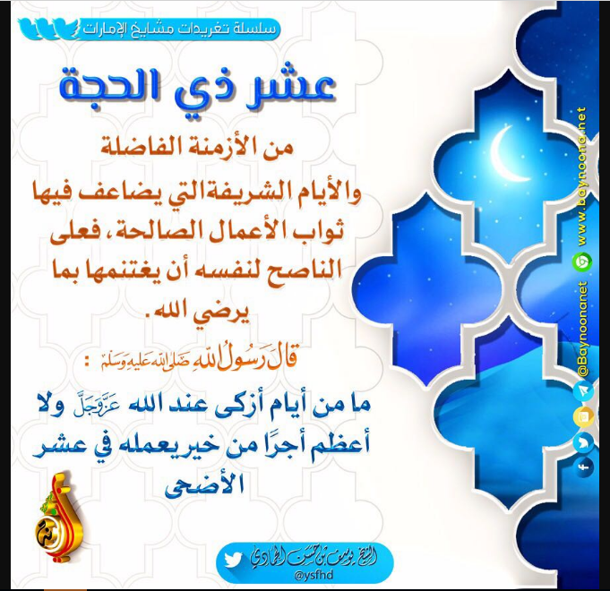 هلت علينا اليوم العشر من ذي الحجه الله يجعلنا وياكم ممن يقبل منه ويغفر له عالم حواء