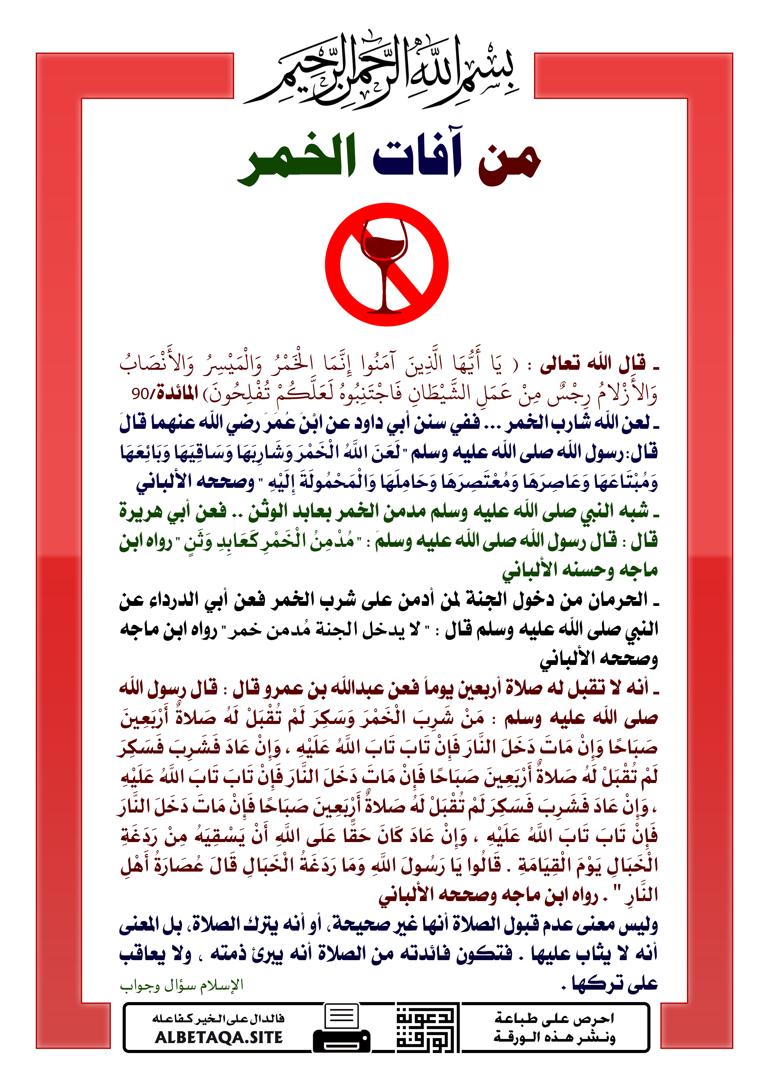 شــارب الـخـمـر إن مــات عــلــيــهــا مـــات كــافــرا منتديات قصيمي نت