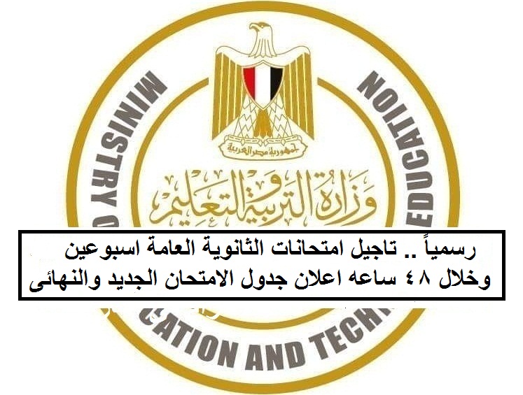 وزارة التربية والتعليم تعلن رسميا تاجيل امتحانات الثانوية العامة اسبوعين وخلال 48 ساعه اعلان جدول الامتحان الجديد والنهائى