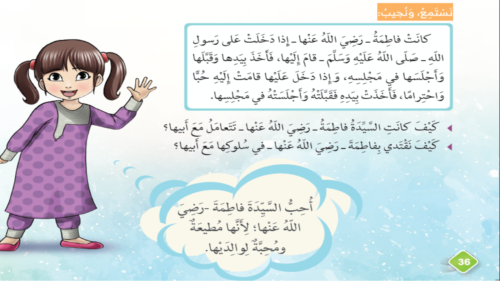 حل درس السيدة فاطمة رضي الله عنها في التربية الاسلامية للصف الثاني الفصل الثاني