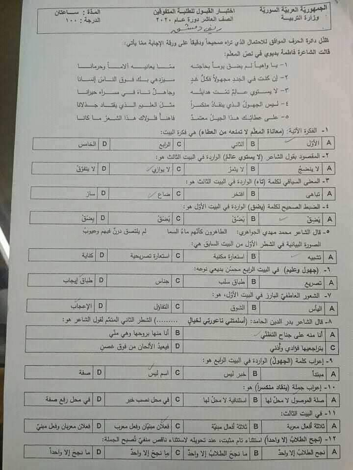مدرسة المتفوقين الامتحان المركزي Syrian Geographic Facebook